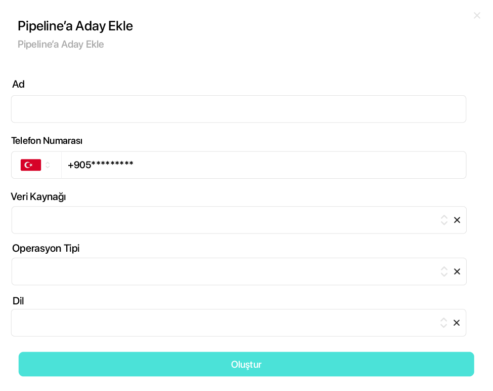 pipeline sürecine eklenir. Bu işlem, potansiyel müşterinin satış veya hizmet sürecinde aktif olarak takip edilmesini sağlar.